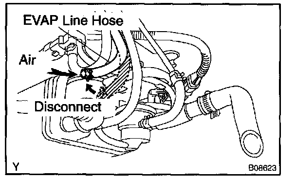 e. Reconnect the EVAP line hose to the charcoal canister.