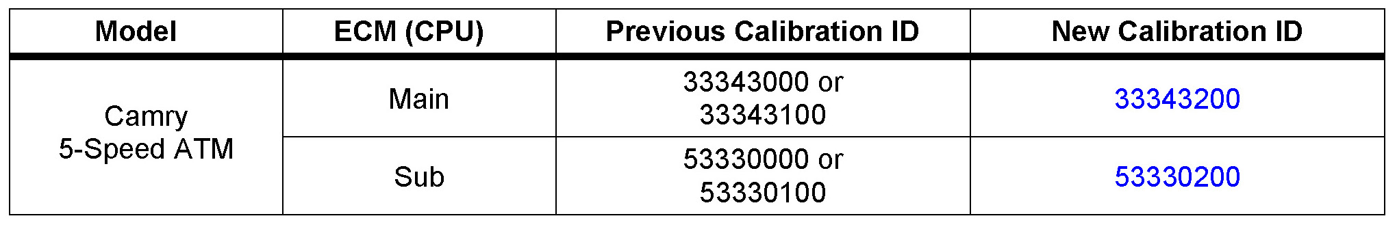 ECM CALIBRATION UPDATE: SHIFTING ENHANCEMENT (1MZ-FE, 5-SPEED A/T)