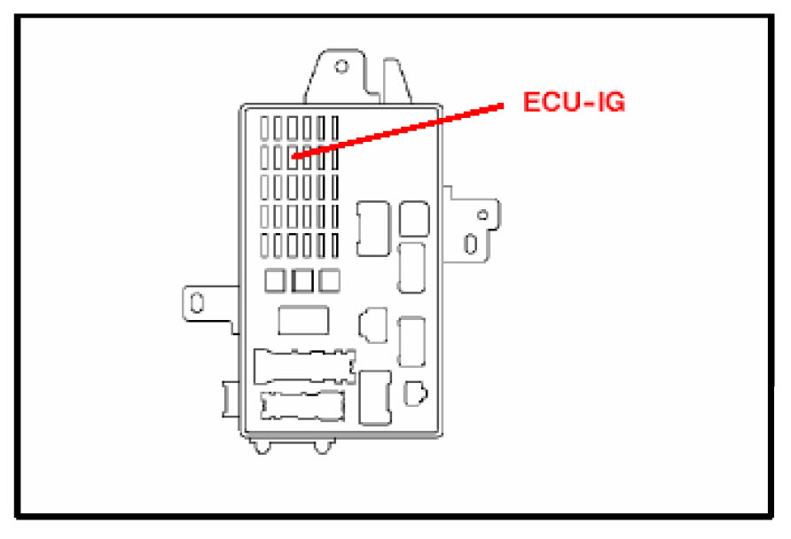 1. Remove the 10A ECU-IG fuse from the Instrument Panel Junction Block assembly. This action prevents possible activation of the ABS relay, resulting in ECM Reprogramming failure.
