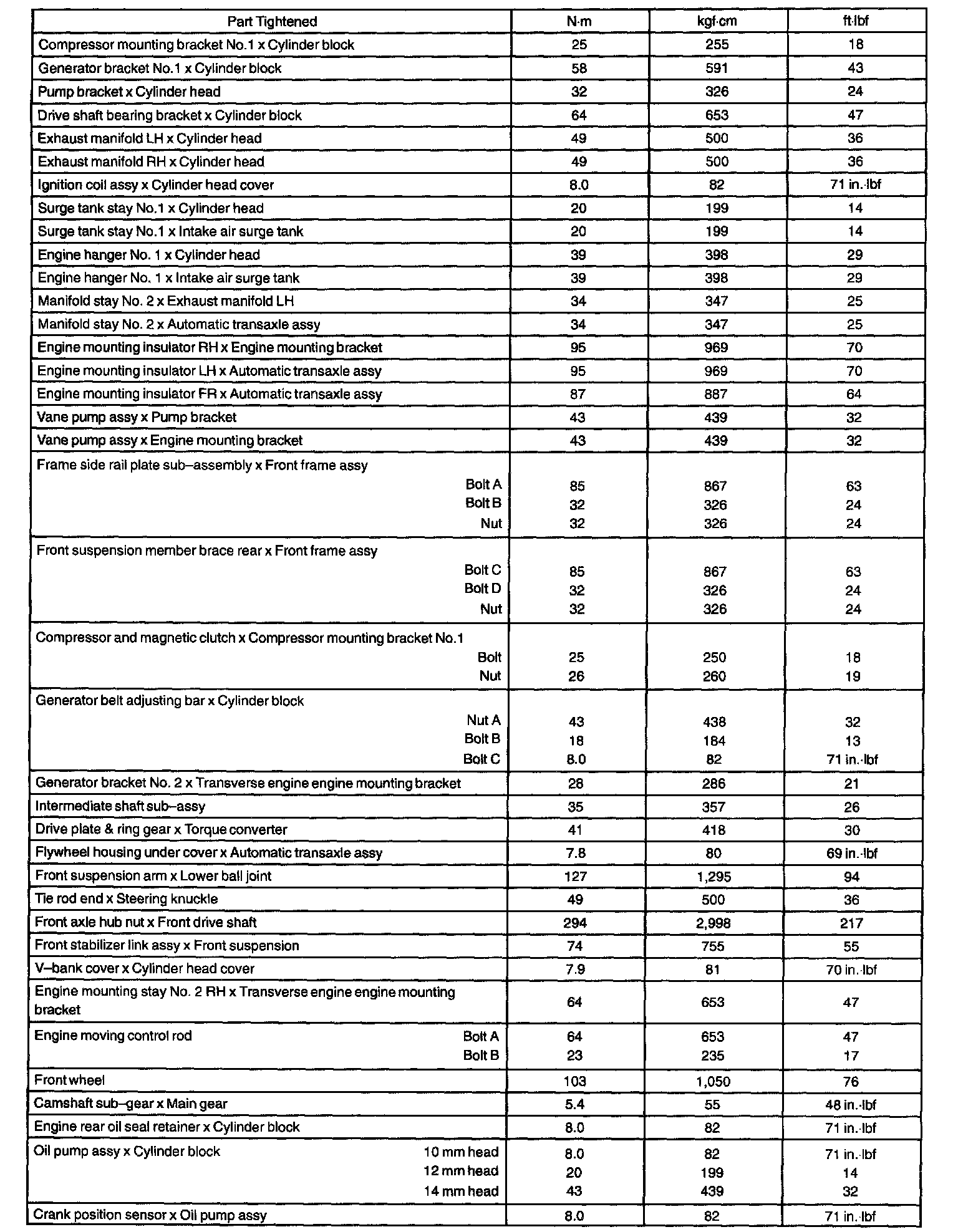 Torque Specifications