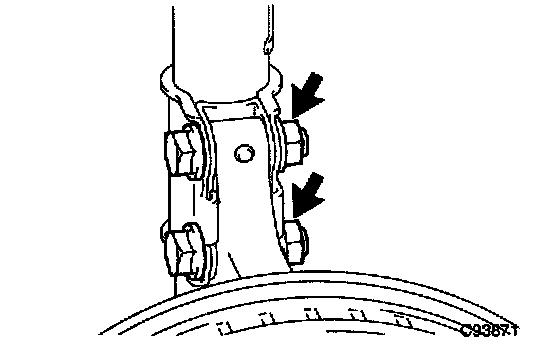 b. Remove the 2 nuts on the lower side of the shock absorber.