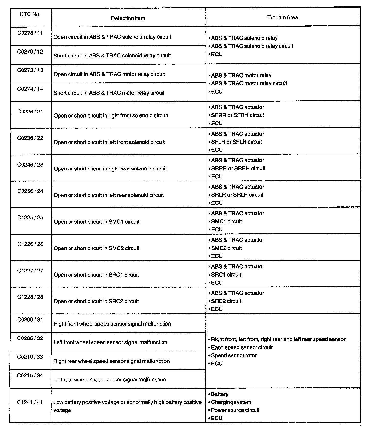 DTC C0278 - C1241: