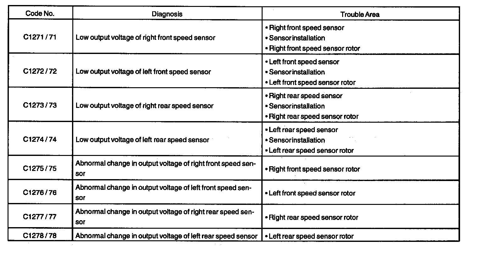 DTC of speed sensor check function