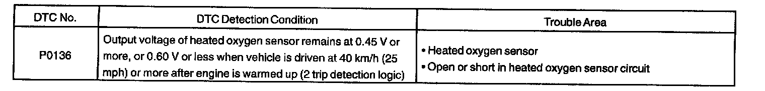 DTC P0136 Oxygen Sensor Circuit Malfunction (Bank 1 Sensor 2)CIRCUIT DESCRIPTION