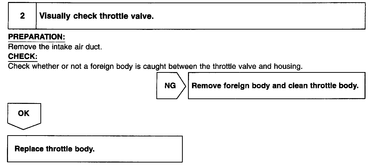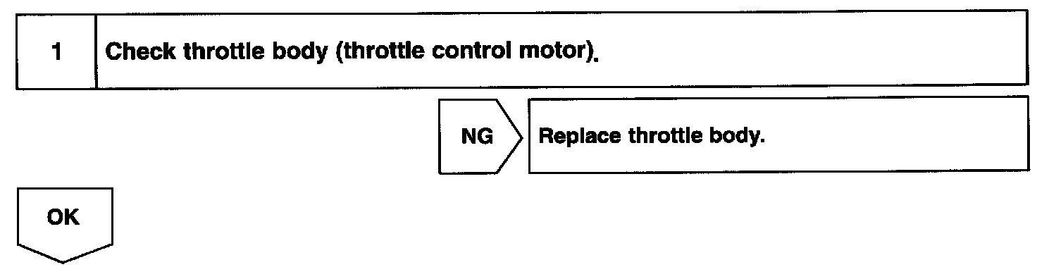 The throttle motor is operated by the ECM and it opens and closes the throttle valve. The opening angle of the throttle valve is detected by the throttle position sensor which is mounted on the throttle body. And, it provides feedback to the ECM to control the throttle motor in order to make the throttle valve opening angle properly in response to the driving condition. If this DTC is stored, the throttle valve is locked at a certain opening angle. Also, the whole electronically controlled throttle operation is cancelled until the system returns to normal and the ignition switch is turned OFF.
