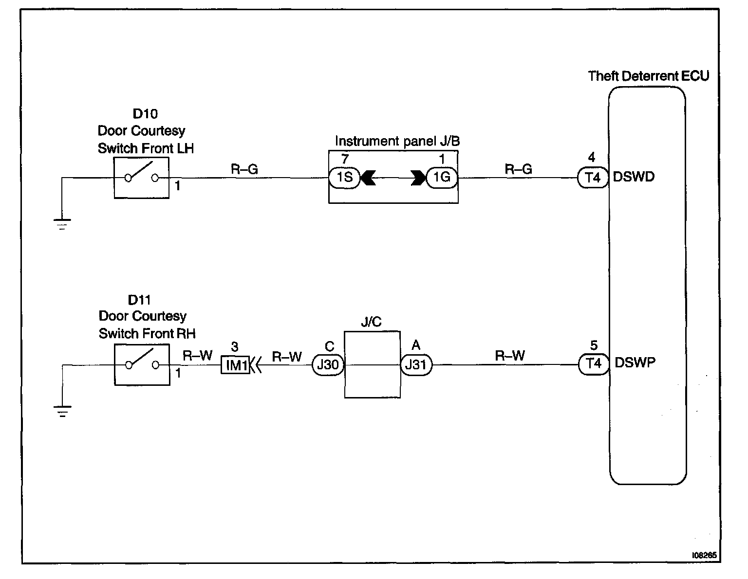 The door courtesy switch goes ON when the door is opened and goes OFF when the door is closed.