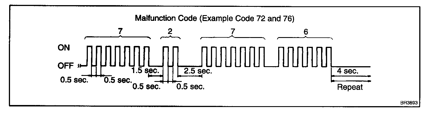 - If every sensor is normal, the normal code is output (A cycle of 0.25 seconds ON and 0.25 seconds OFF is repeated).