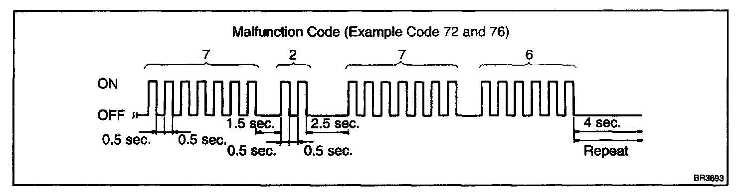 - If every sensor is normal, the normal code is output (A cycle of 0.25 seconds ON and 0.25 seconds OFF is repeated).