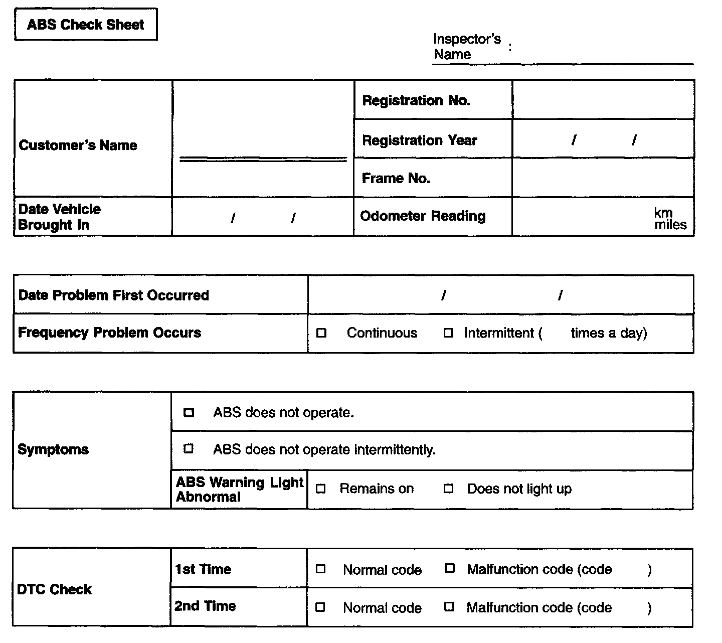ABS Check Sheet: