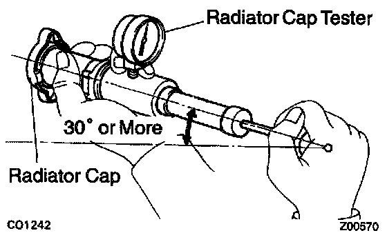 a. Fill the radiator with coolant, and attach a radiator cap tester.