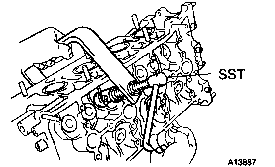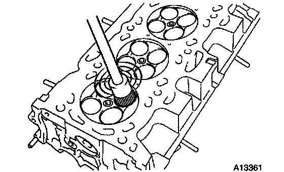 a. Using SST, compress the valve spring and remove the 2 keepers.