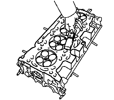 Using a dye penetrate, check the combustion chamber, intake ports, exhaust ports and cylinder block surface for cracks.