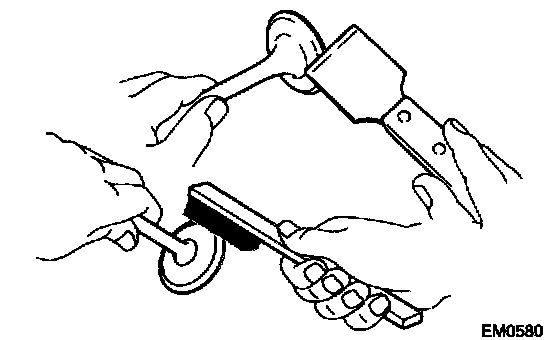b. Using a wire brush, thoroughly clean the valve.