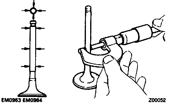 6. INSPECT VALVE STEMS AND GUIDE BUSHINGS