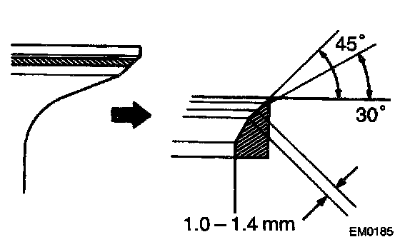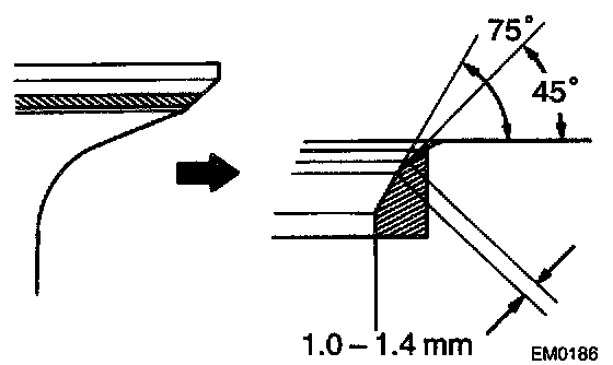 - Check that the seat contact is in the middle of the valve face with the following width: 1.0 - 1.4 mm (0.039 - 0.055 inch)