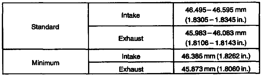 Camshaft journal diameter: 35.971 - 35.985 mm (1.4165 - 1.4167 inch)