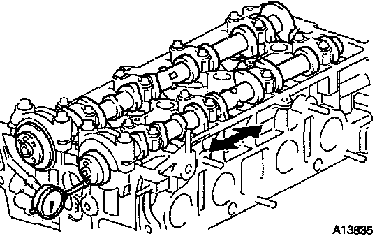 If the thrust clearance is greater than maximum, replace the camshaft. If necessary, replace the bearing caps and cylinder head as a set.