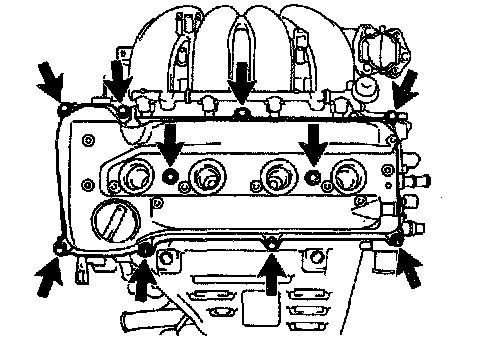 d. Remove the 8 bolts, 2 nuts, cylinder head cover and gasket.