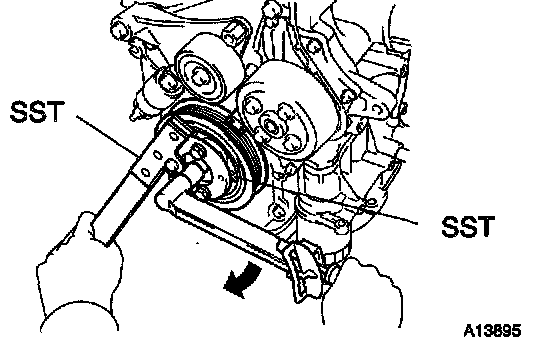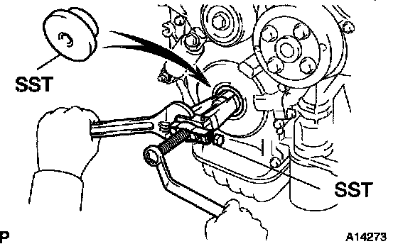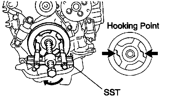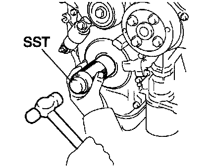 HINT: If necessary, remove the pulley with SST.