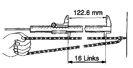 If the elongation is greater than the maximum, replace the chain.