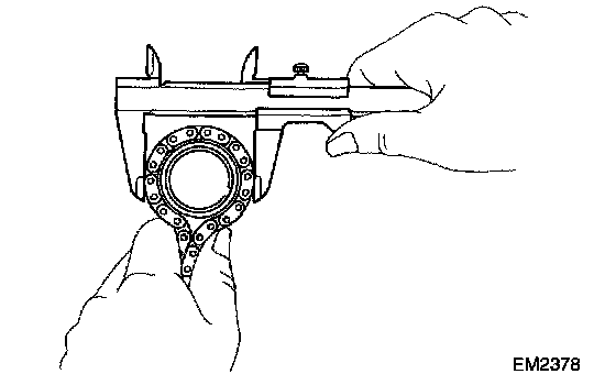 If the diameter is less than the minimum, replace the chain and sprockets.