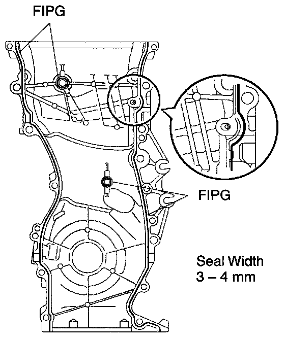 b. Apply seal packing to the timing chain cover as shown in the illustration.