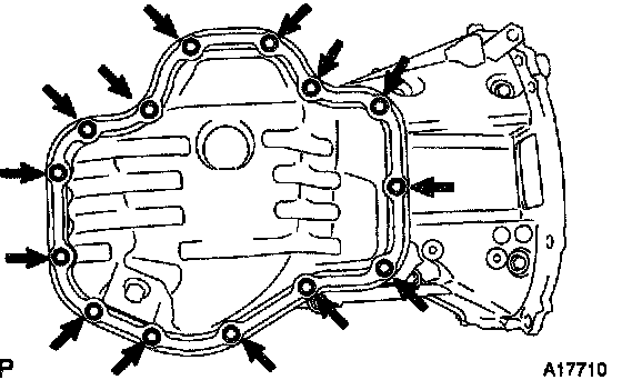 b. Apply seal packing to the oil pan as shown in the illustration.