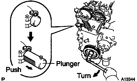 b. Turn the crankshaft clockwise, and check that the slipper is pushed by the plunger.