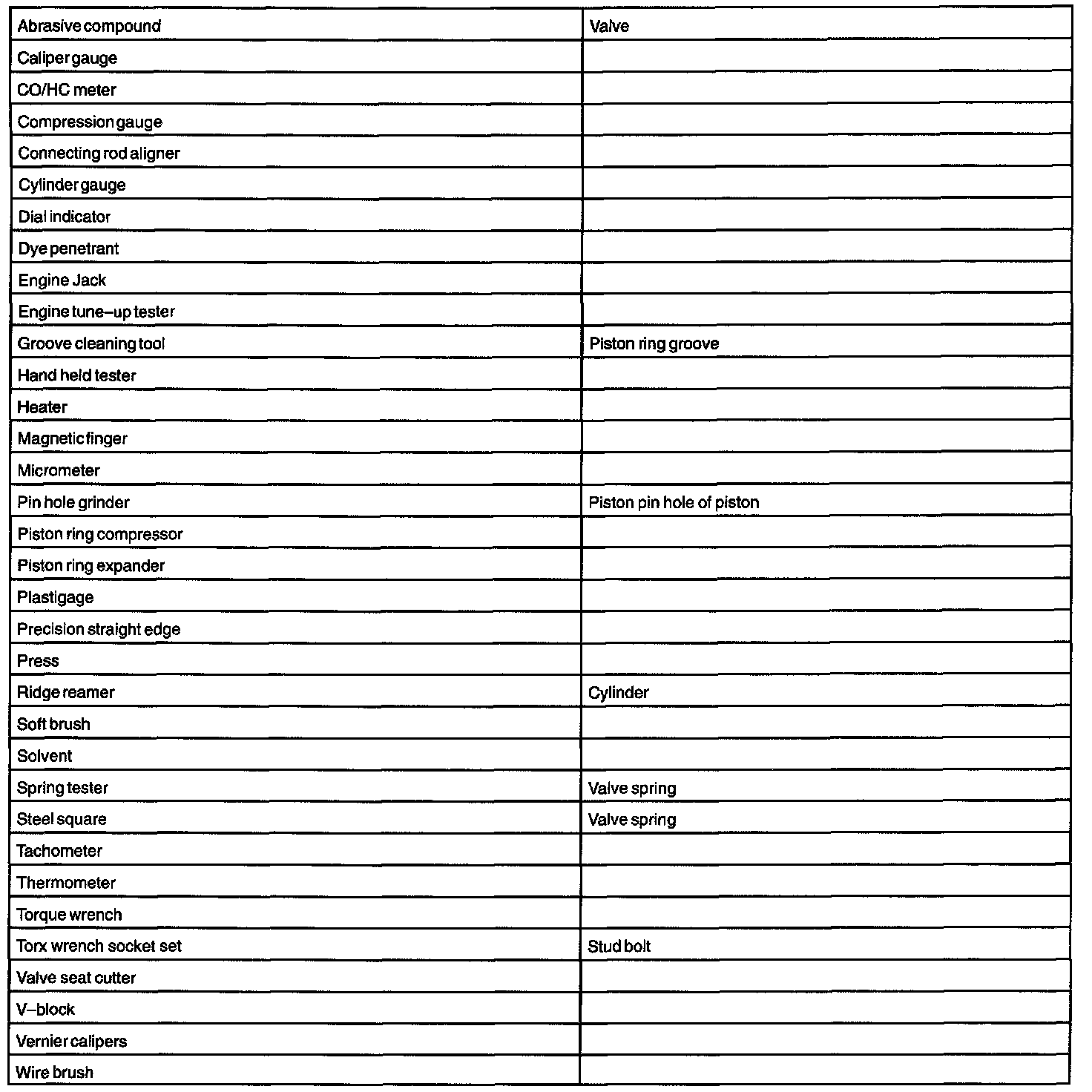 Engine: Tools and Equipment