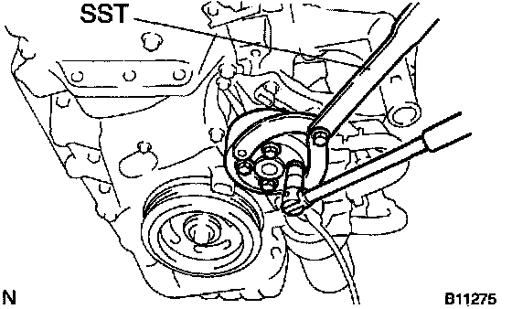 a. Using SST, remove the 4 bolts and pump pulley.