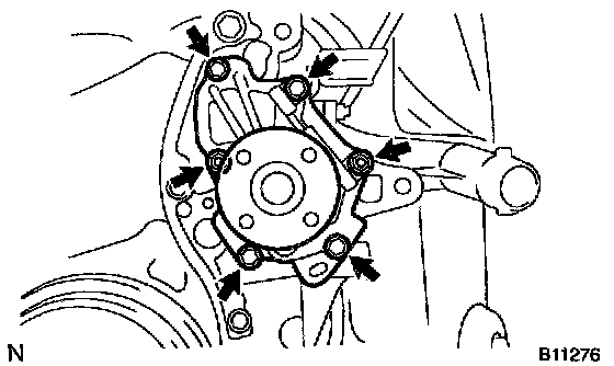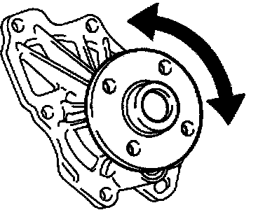 b. Turn the pulley, and check that the water pump bearing moves smoothly and quietly.