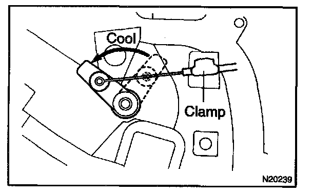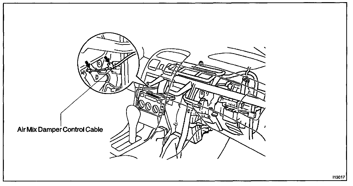 NOTE: When the air mix damper control cable is disconnected, should not bend the cable.