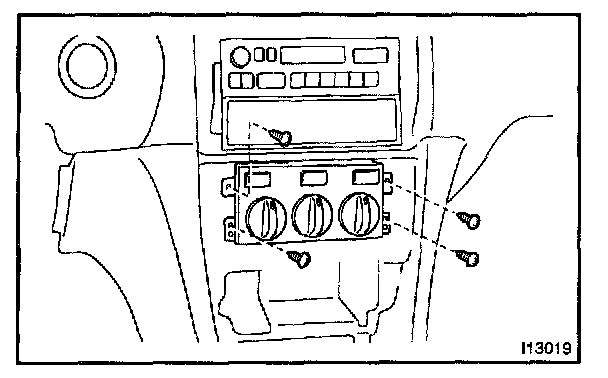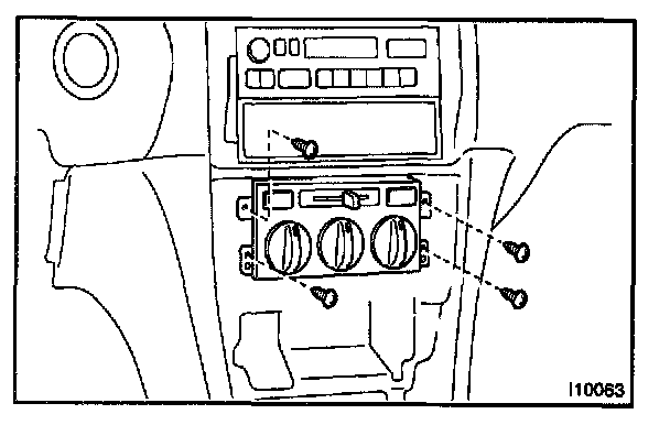 Remove the 4 screws and pull out the A/C control assembly, then disconnect the connectors.