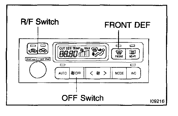 a. Turn the ignition switch on while pressing the air conditioning control AUTO switch and R/F switch simultaneously.