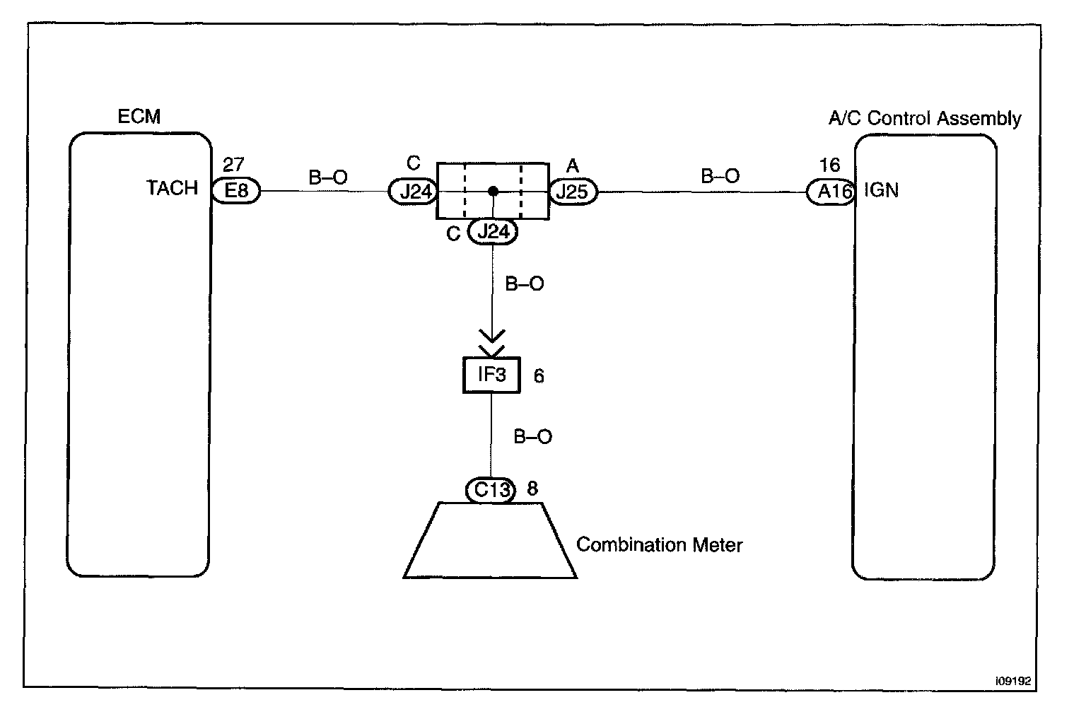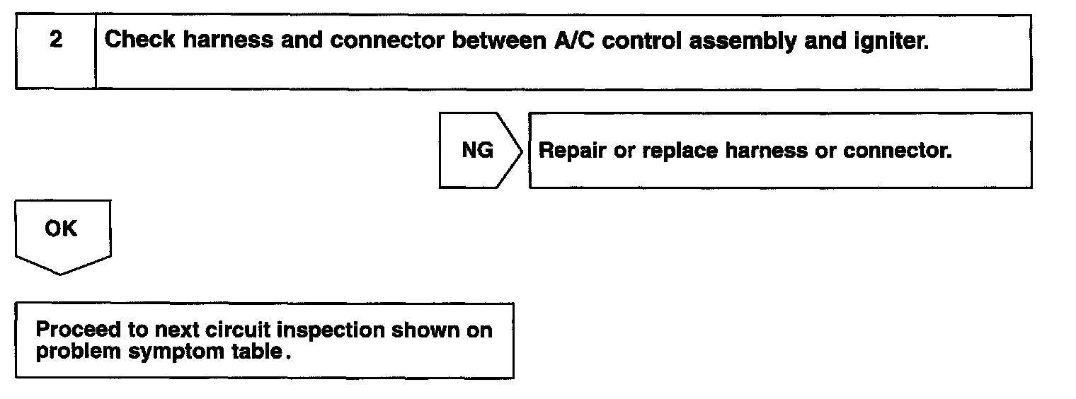 This A/C control assembly monitors the engine speed through signals sent from the igniter. The A/C control assembly uses these signals and compressor speed signals to detect the compressor lock condition.