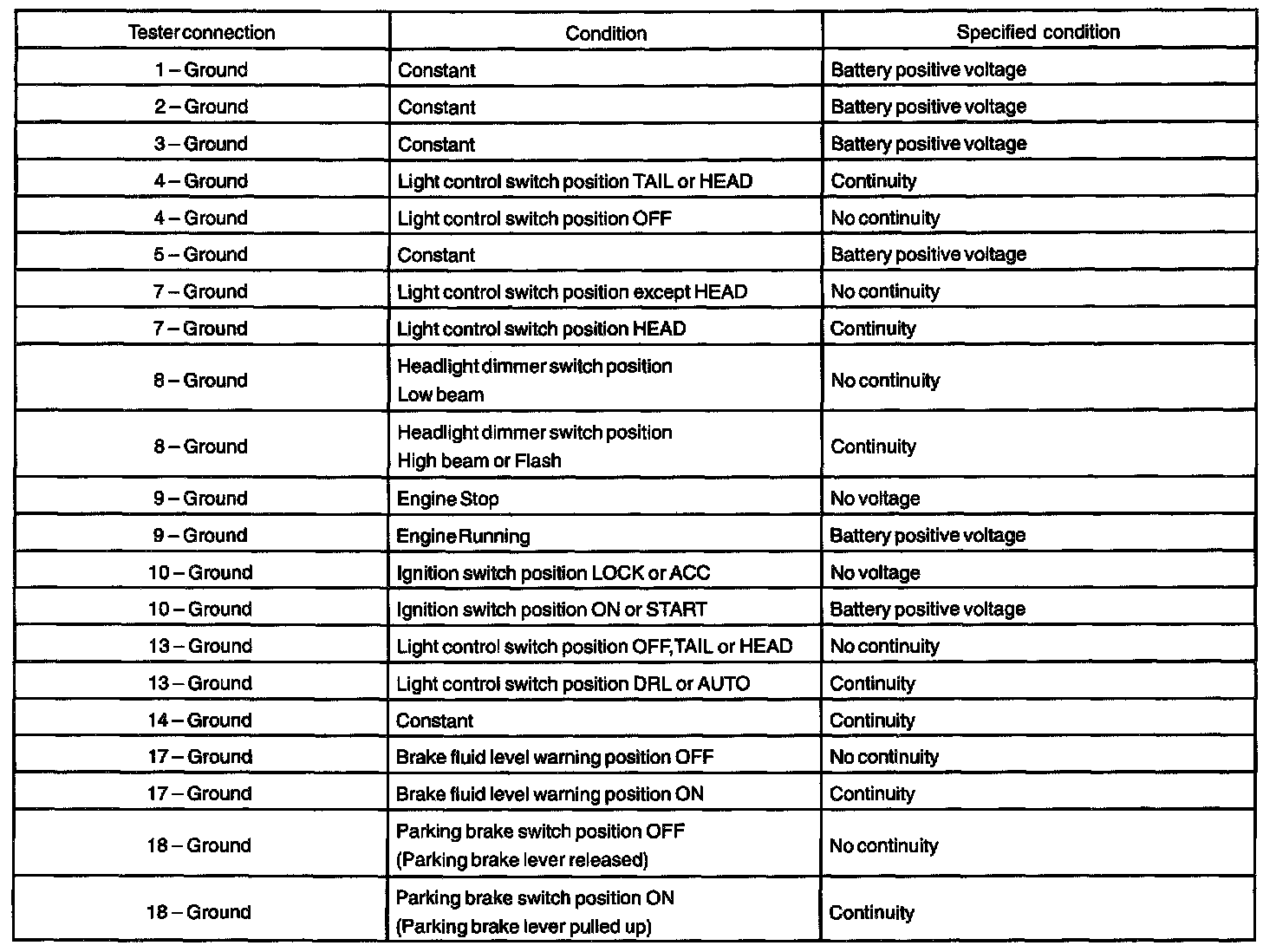 If circuit is not as specified, inspect the circuits connected to other parts.