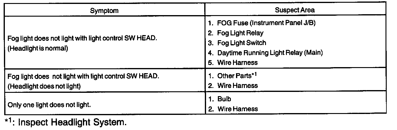 Problem Symptoms Table - Fog Light System: