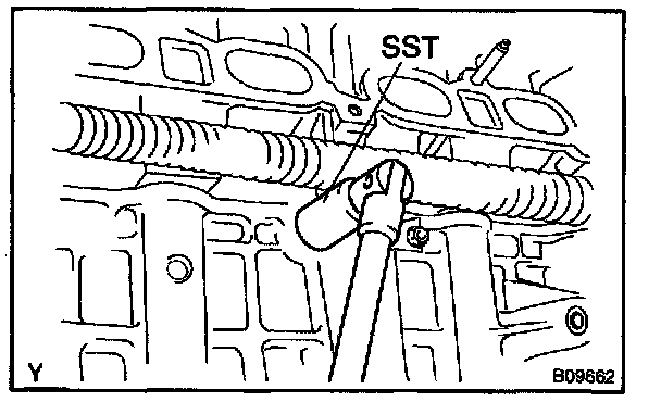 b. Using SST, remove the knock sensor.
