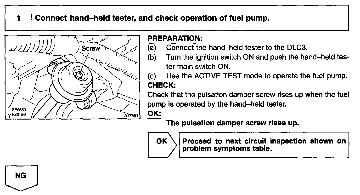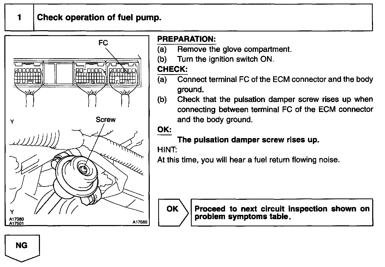 While the NE signal is generated (engine running), the ECM keeps Tr on (circuit opening relay on) and the fuel pump also keeps operating.