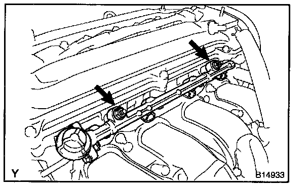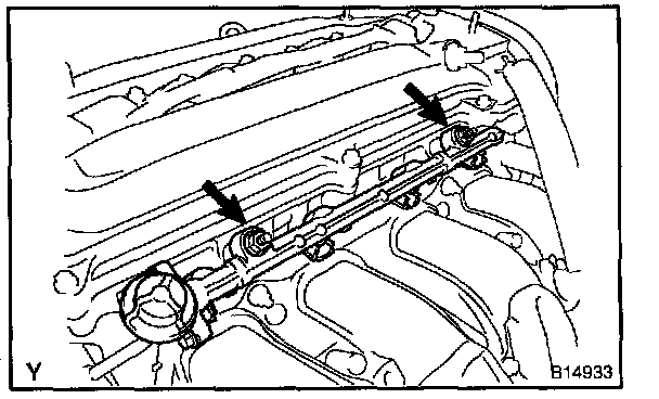 j. Temporarily install the 2 bolts holding the delivery pipe to the cylinder head.