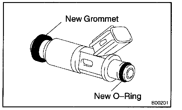 b. Apply a light coat of spindle oil or gasoline to new O-ring and install them to each injector.