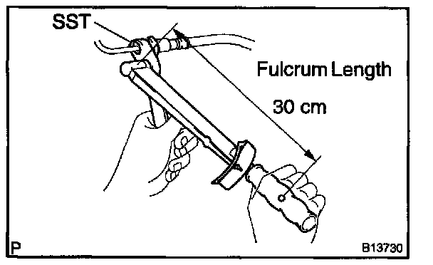 HINT: Use a torque wrench with a fulcrum length of 30 cm (11.81 in.).