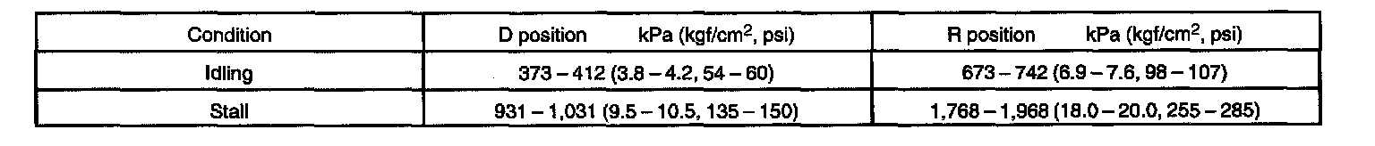 8. Depress the accelerator pedal all the way down. Quickly read the highest line pressure when the engine speed reaches the stall speed.