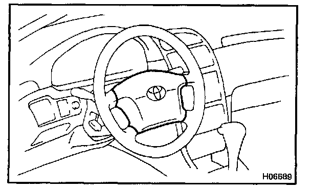 The inflater and bag of the SRS are stored in the steering wheel pad and cannot be disassembled. The inflater contains a squib, igniter charge and gas generant, etc., and inflates the bag when instructed by the airbag sensor assembly.