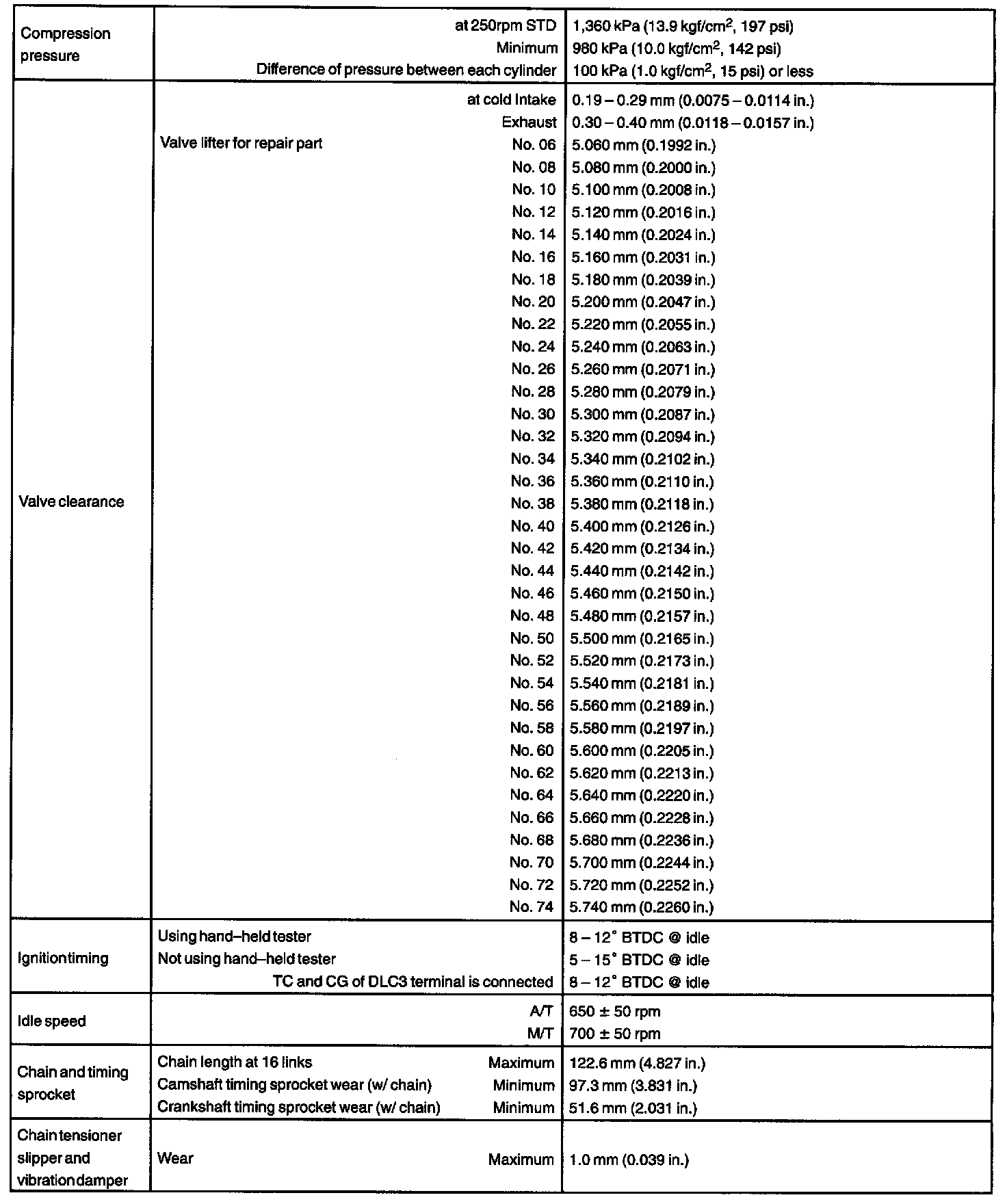 ENGINE MECHANICAL (2AZ-FE) SERVICE DATA: