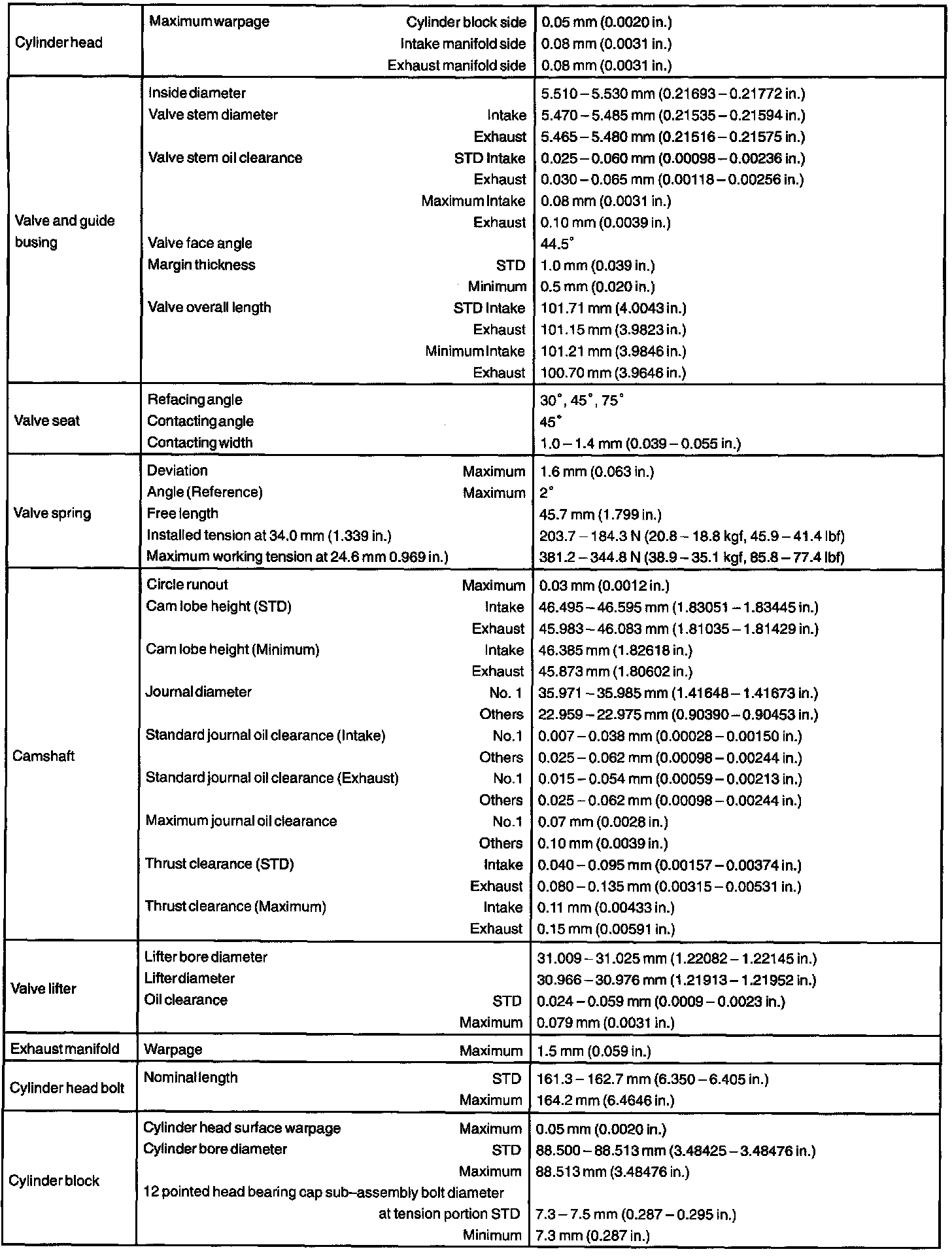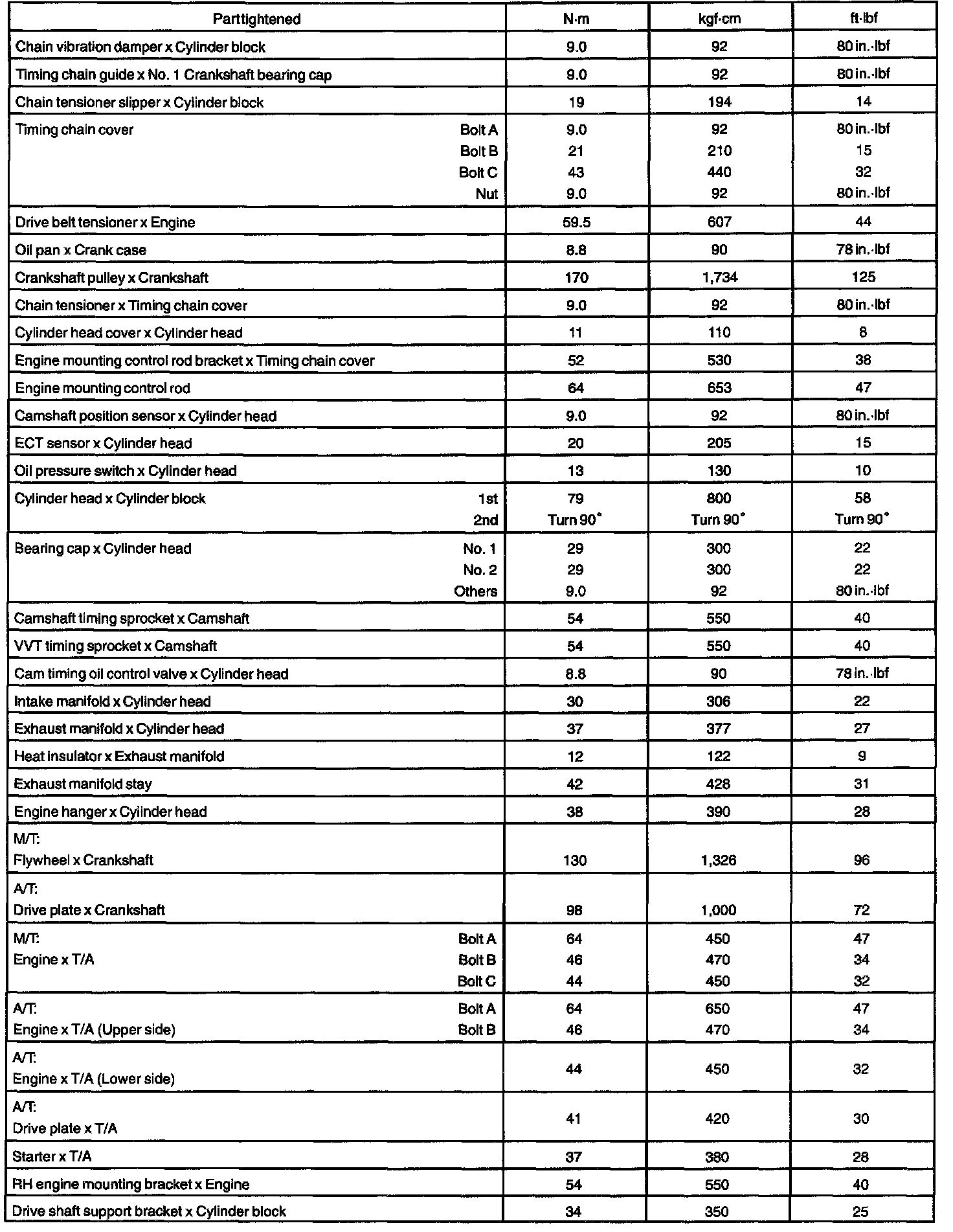 Engine Torque and Service Data