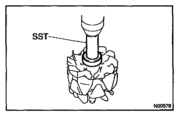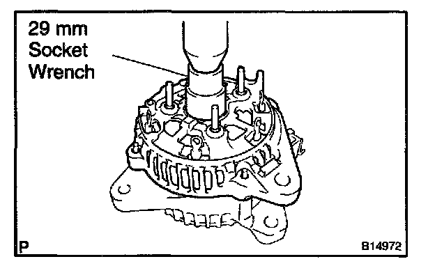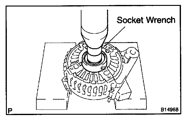 b. Using a 29 mm socket wrench and press, slowly press in the rectifier end frame.