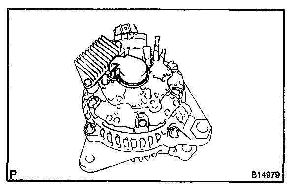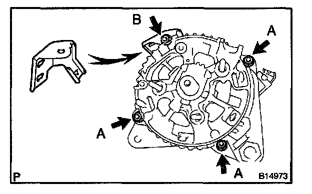 b. Remove the 5 screws, brush holder and voltage regulator.
