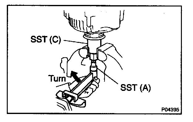 e. Insert SST (B) into SST (C), and attach the pulley nut to SST (C).