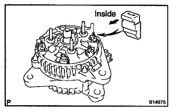 b. Place the voltage regulator and brush holder on the rectifier end frame.
